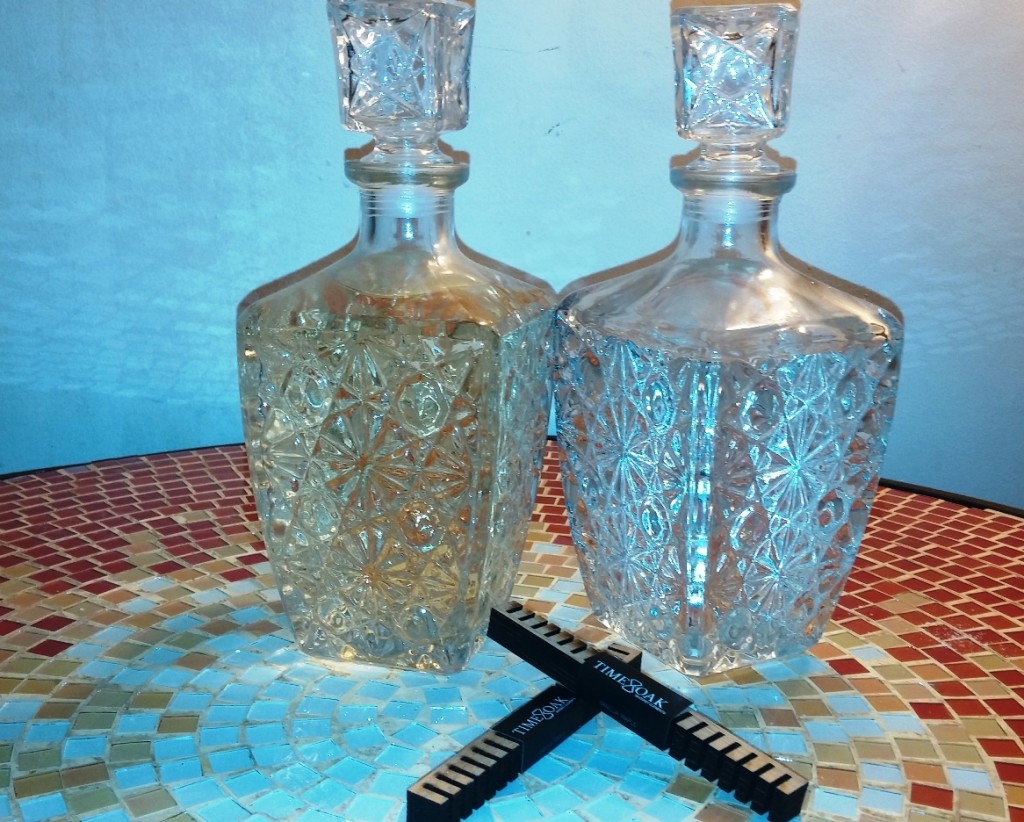 Essentially, the Time and Oak team carefully designed and fine-tuned pieces of wood which they say provide “3 years of aging ‘effects’ (time travel not included) in just 24 hours.” They do not add artificial flavoring, despite offering “flavors” of their Whiskey Elements based on different heating and charring techniques.