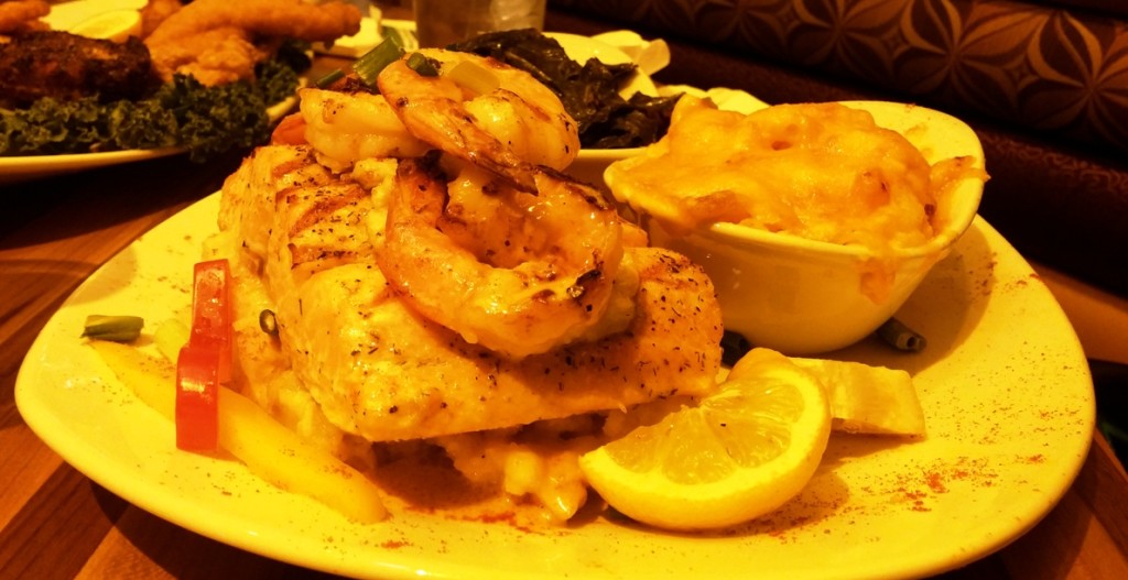 Take the Creole Grilled Salmon, as an example. Salmon is always a great choice for the health-conscious amongst us, right? Well, here, a massive filet is served with a cream sauce, and topped with crab meat and grilled shrimp, over a massive mound of buttery mashed potatoes, and accompanied by two sides, collard greens, and one of the cheese-densest macaroni and cheeses you’ll find anywhere.
