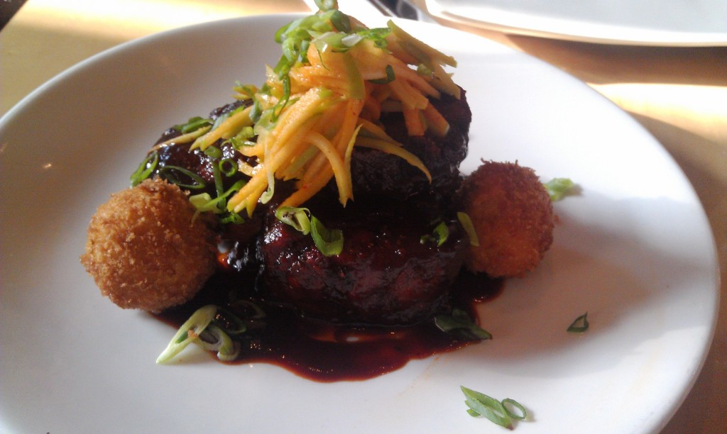 The standout of the Test Kitchen menu is the Adobo Sweet and Sour BBQ Pork Ribs, with wonderfully tender, succulent, falling off the bone meat, served with addictive fried papa rellena stuffed with jack cheese and bacon.
