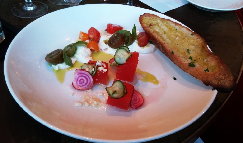 He also showcases the wares from his small on-site patio garden, with which he grows fresh herbs and vegetables. Take a sip of their spicy margarita and the freshly grown jalapeno jumps out at you with its bite, while fresh basil may be used to highlight a burrata and compressed watermelon salad.
