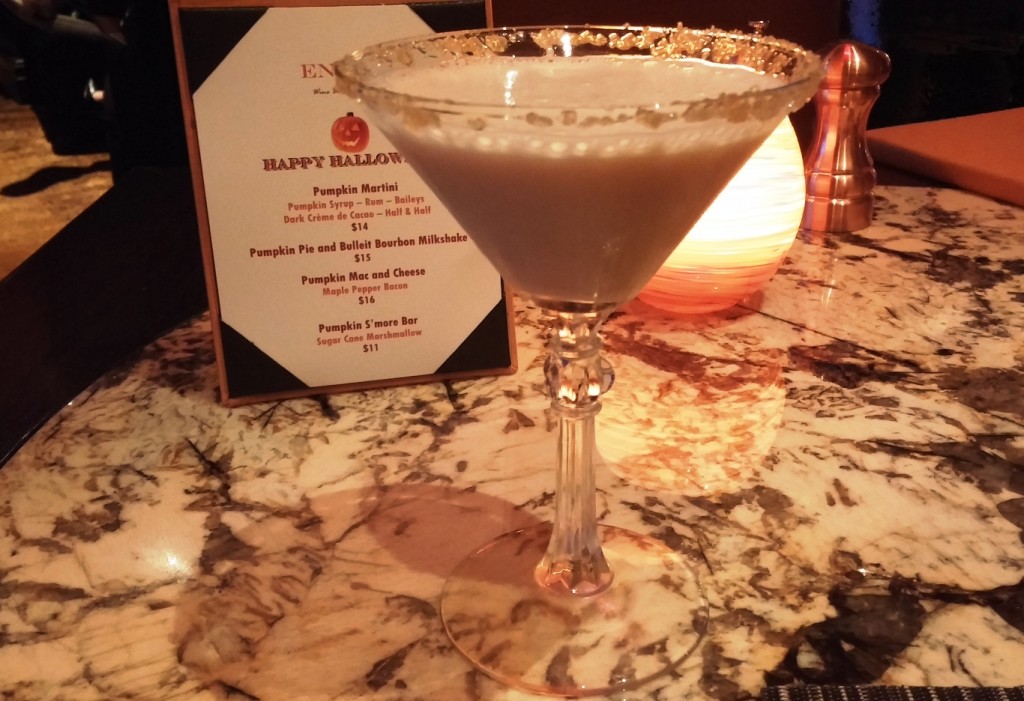 When you’re focused on the eating & drinking portion of their pumpkin-palooza, head to Entyse, and start with a Pumpkin Martini, made with rum, Baileys, pumpkin syrup, Creme de Cacao, and half & half, with a candy-sugar rim.