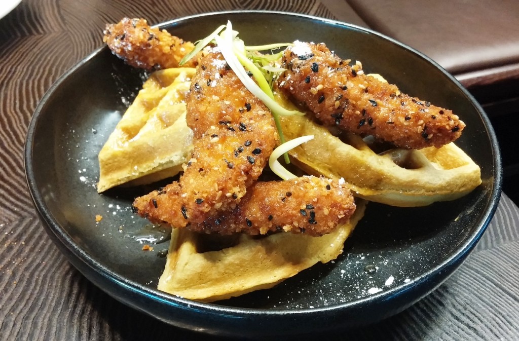 All of the new East West brunch entrees sound delicious: Chicken & Green Tea Waffles; Five Spice Pork Belly Benedict; Egg & Cheese Breakfast Spring Rolls; Sichuan Hanger Steak Loco Moco; Shanghai Shrimp and Grits; and Mango Black Tea French Toast.